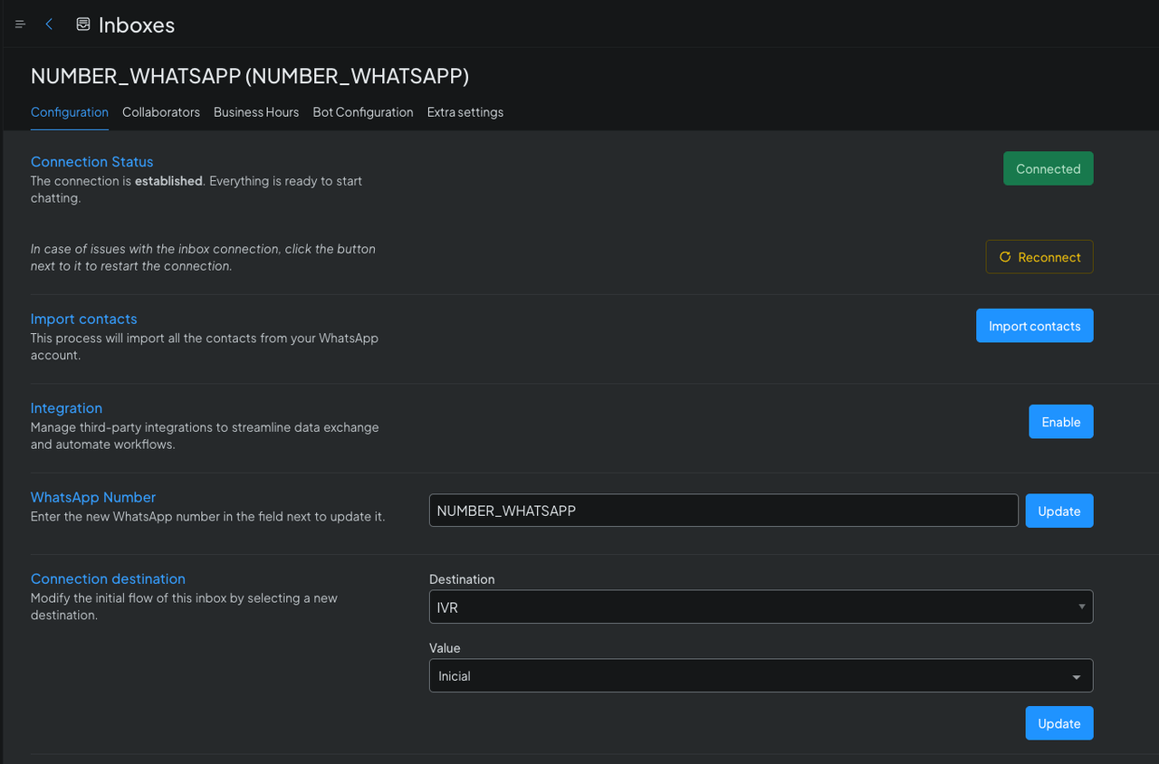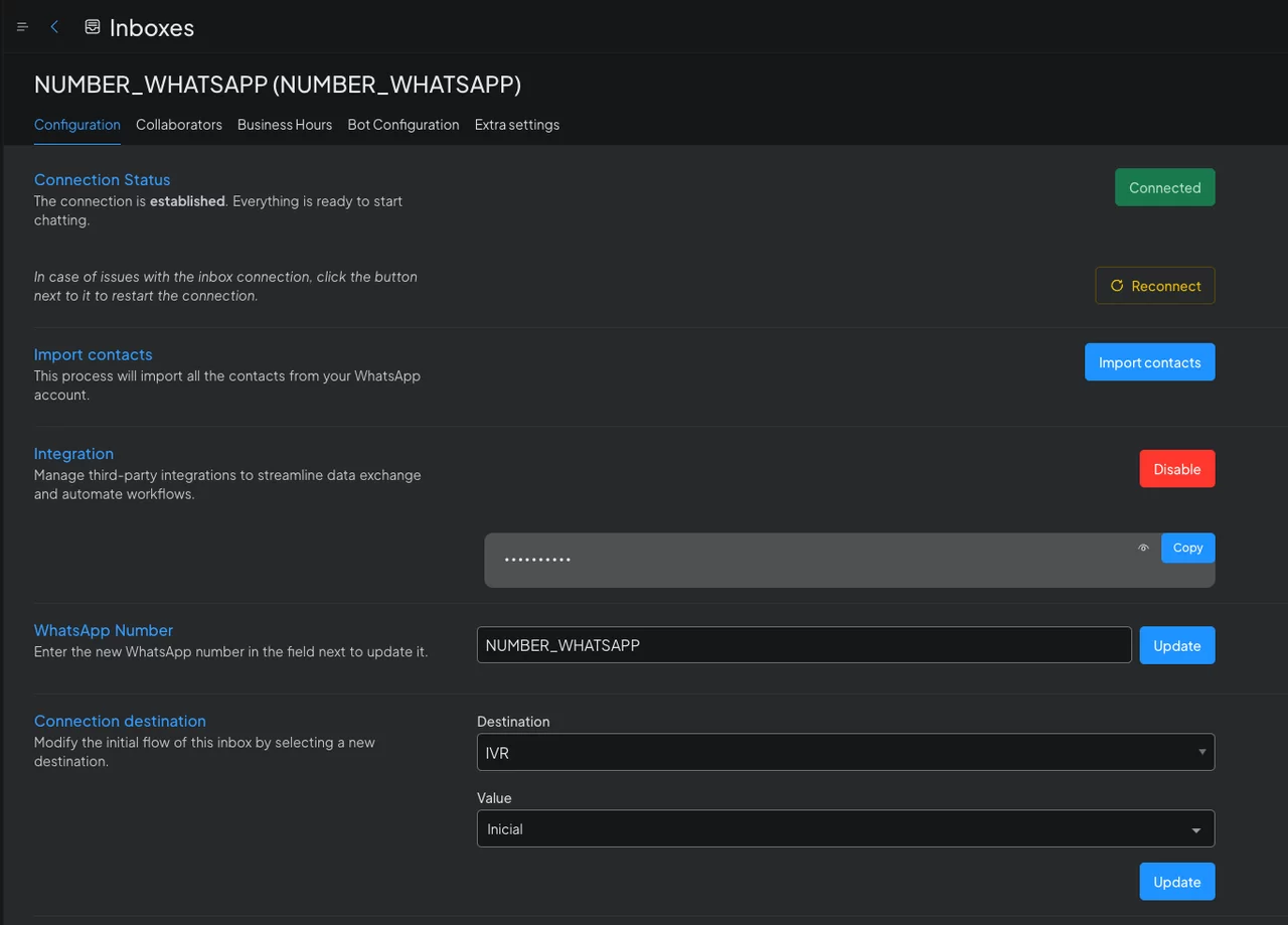 – Habilite o sinalizador de integração nas configurações da caixa de entrada para gerar um token de integração.