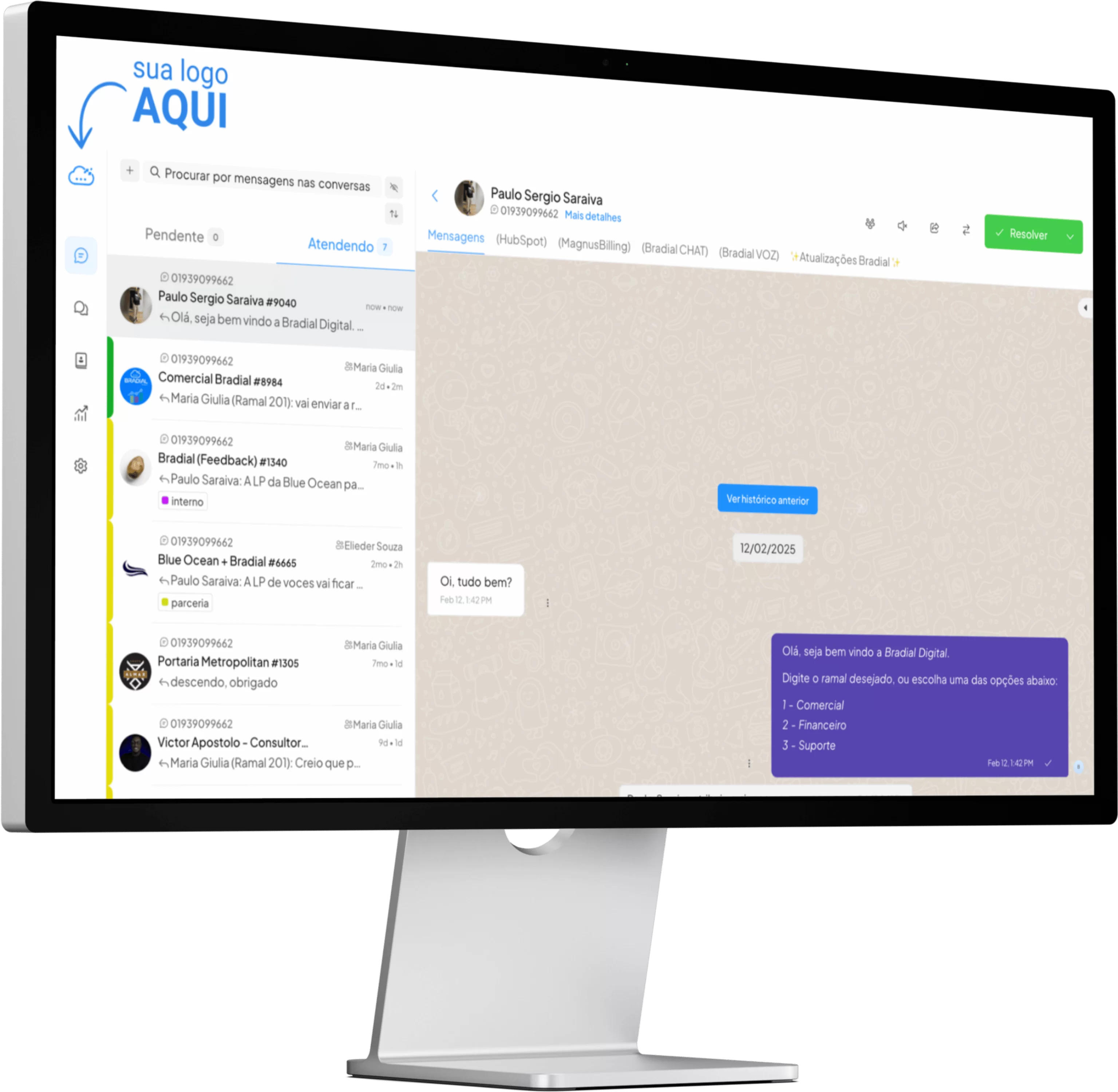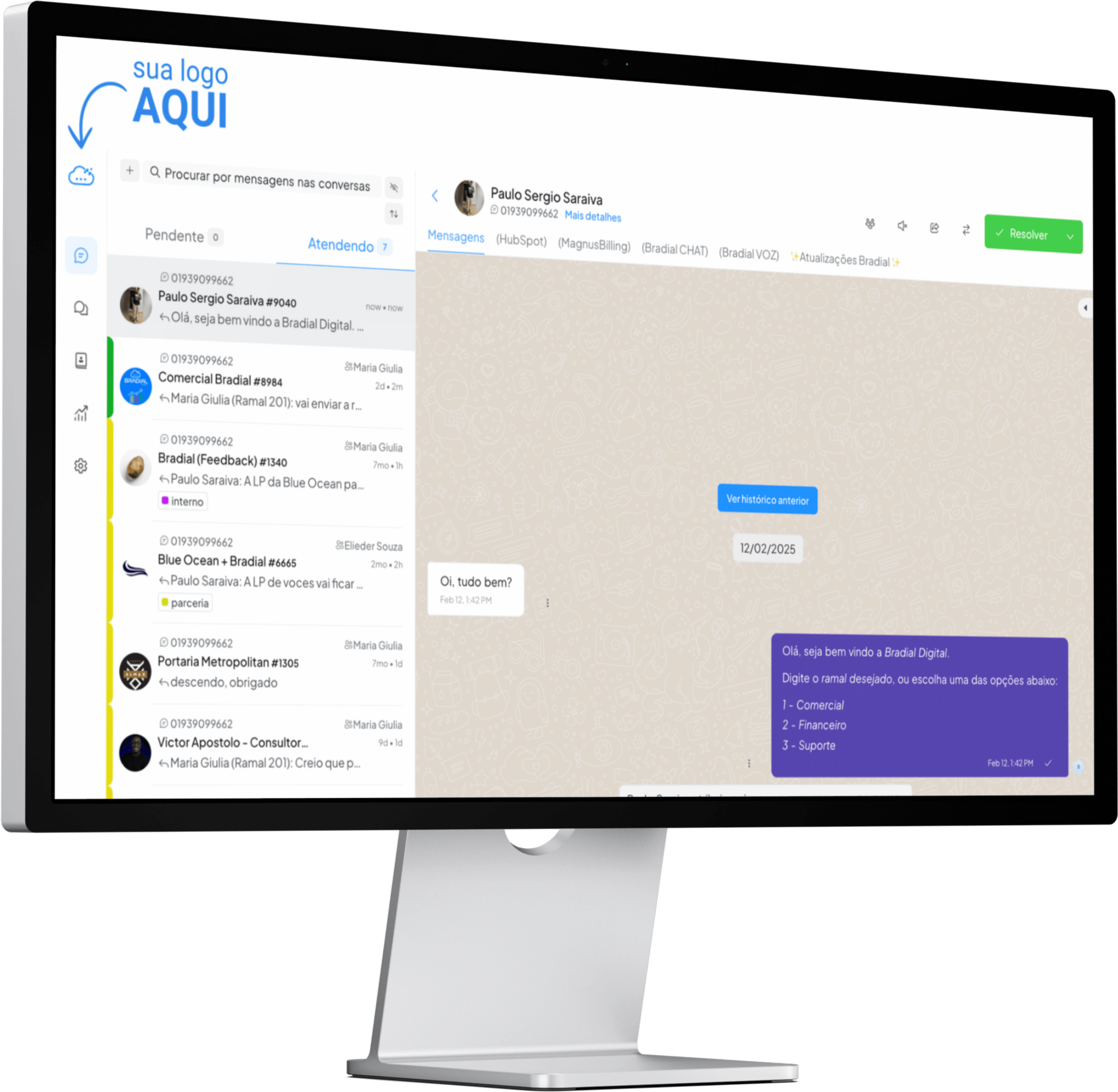 Oferecemos suporte completo para nossos parceiros, incluindo assistência técnica, comercial e de marketing. Nosso objetivo é garantir que você cresça e obtenha retorno rápido com o Bradial Chat.